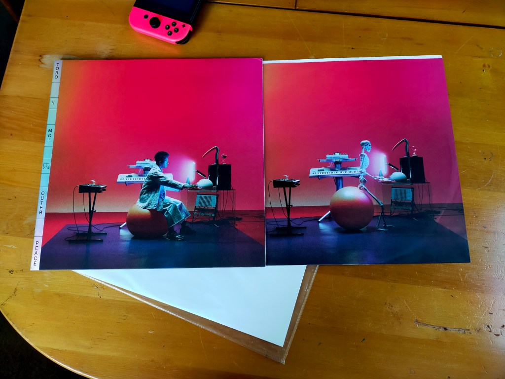 One downside is that it is on clear vinyl, which makes it so hard to see the groves between the songs, so when I was playing records at the Sprig the other day, I had to play side one track one (Colors) rather than the intended track (Dark) because I couldn’t find it in time. I’m personally a fan of black vinyl, but coloured is all good. Clear and white are the only two I don’t like. (I just checked on bandcamp and there is a black vinyl version of this too, but the record store I got it from only had the clear)
